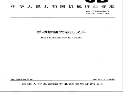 本标准代替JB/T32991999《手动插腿式液压叉车》,与JB/T3299—1999相比主要技术变化如下修改了标准的英文名称;