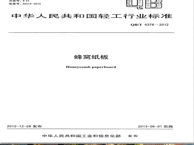 本标准规定了蜂窝纸板的术语和定义、分类、技术要求、试验方法、检验规则、标志、包装、运输和贮存。