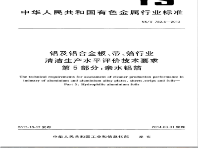 The technical requirements for assessment of cleaner production performance inindustry of aluminium and aluminium alloy plates, sheets,strips and foils-Part 5: Hydrophilic aluminium foils2013-10-17发布