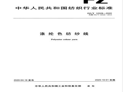本标准代替FZ/T12028—2012《涤纶色纺纱线》。与FZ/T12028—2012相比主要技术变化如下:标准范围调整为环锭纺和喷气涡流纺生产的涤纶色纺纱线;增加了喷气涡流纺涤纶色纺纱线的技术要求(见4.3.1.3);一环锭纺涤纶色纺纱技术要求增加了千米棉结考核项目,提高了单纱断裂强度、单纱断裂强度变异系数、十万米纱疵考核要求(见4.3.1.1,2012年版的5.3.1表1);一环锭纺涤纶色纺线技术要求删除了条干均匀度变异系数考核项目,提高了单线断裂强度、单线断裂强力变异系数考核要求,增加了捻度变异系数一等品的考核要求(见4.3.1.2,2012年版的5.3.1表2);
