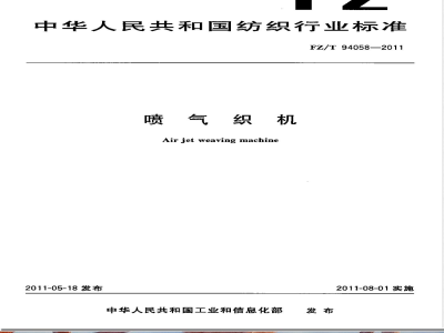 T—总运行时间(不少于10h)单位为小时(h);T因机械、电器故障引起的停车时间,单位为小时(h)。5.2噪声按GB/T7111.1和GB/T7111.6的规定检测。FZ/T94058-2011