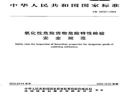 本标准规定了氧化性危险货物的要求、试验、标志和标签、检验规则。本标准适用于氧化性危险货物的危险特性检验。 GB 19452-2004 氧化性危险货物危险特性检验安全规范 GB19452-2004 标准下载解压密码:www.bzxz.net