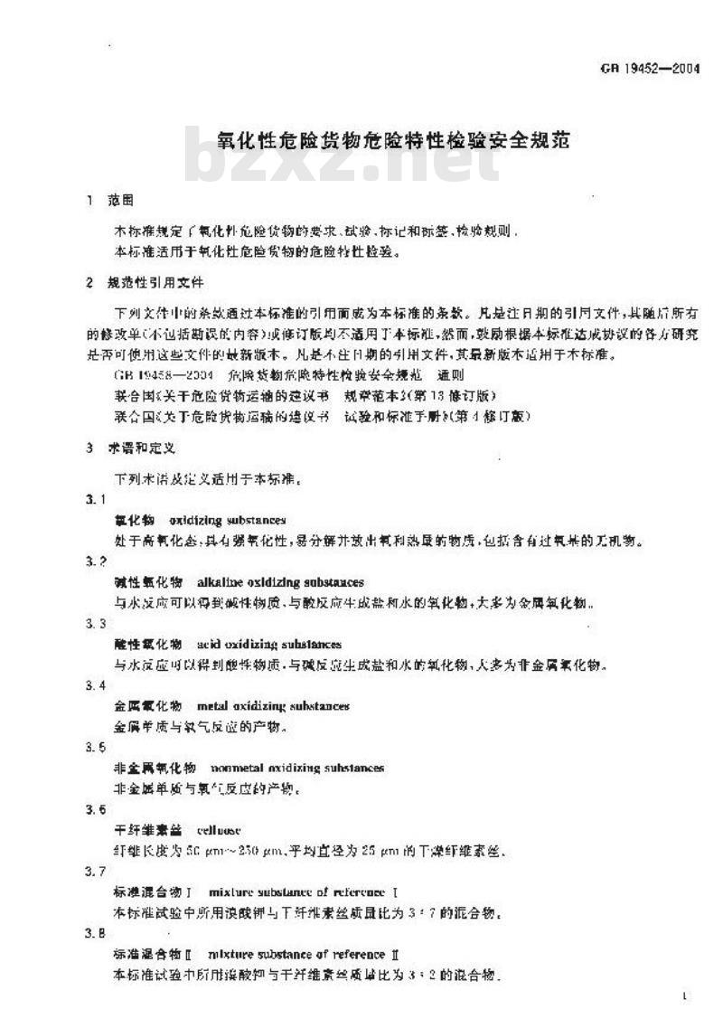 氧化性危险货物危险特性检验安全规范木标推规定【氧化外危险货物的要求、试验,标记和际签,检验规则,本标准活用于氧化性危险货物的危险特检验。2规范性引用文件