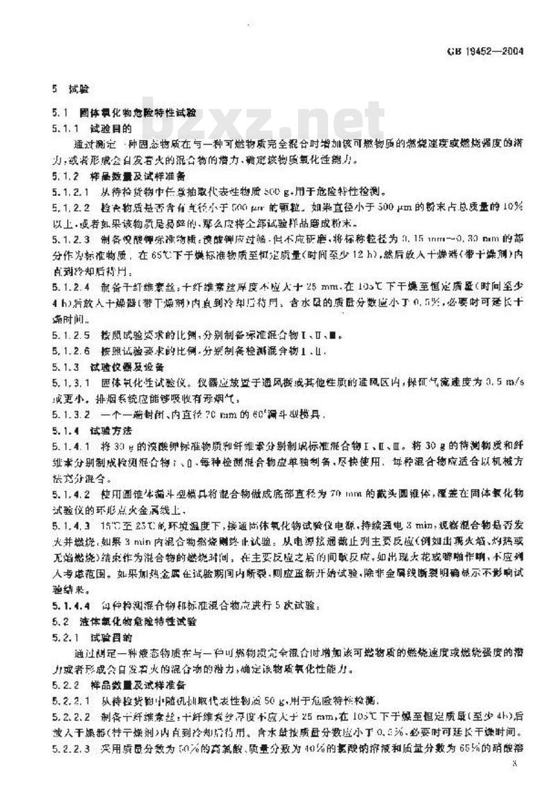 通过则定一种液态物质在与一户川燃物质充全混合时增加该可燃物质的然烧速度或燃烧强度的潜力者形成会白发若火的混合物的搭力,确定该物所氧化性能力。5.2.2样品数及试样准备下载标准就来标准下载网