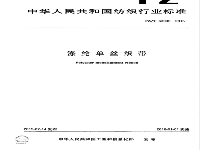 本标准规定了涤纶单丝织带的术语和定义、要求、分等规定、试验方法、检验规则、包装标志和运输贮存。