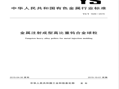 金属注射成型高比重钨合金球粒YS/T1026—2015