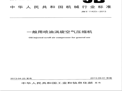 本标准规定了般用喷油涡旋空气压缩机(以下简称“涡旋空压机”)的术语和定义、符号、基本参数、要求、试验方法、检验规则、标志、包装和贮存。本标准适用」采用风冷方式,驱动电动机功率为0.75kW~22kW、额定排气压力为0.5MPa~~1.25MPa的一般用固定的涡旋空压机。其他特定用途的、改装的涡旋空压机办可参照本标准执行。2规范性引用文件