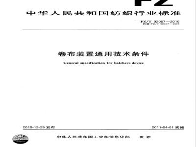 本标准代替FZ/T92057—1998《卷布装置通用技术条件》。本标准与FZ/T92057—1998相比主要变化如下:调整了分类和参数。