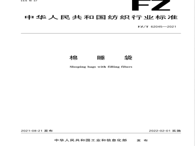 本文件规定了棉睡袋的术语和定义、分类、要求、试验方法、检验规则以及标志、包装、运输和贮存。本文件适用于以纺织织物为主要面料,以各种天然纤维、化学纤维为填充物而制成的棉睡袋。本文件不适用于军队和一20℃以下极端环境探险等特殊用途的睡袋。本标准也不适用于年龄在14周岁及以下儿童及婴幼儿使用的睡袋。:规范性引用文件