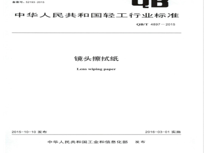 本标准规定了镜头擦拭纸的要求、试验方法、检验规则及标志、包装、运输和贮存。