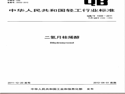 本标准是对QB/T1508一1992《二氢月桂烯醇》的修订。本标准与QB/T1508一1992相比,主要技术变化如下:QB/T1508-2011
