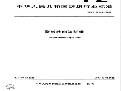 聚酰腰酯短纤维常压上色率试验方法FZ/T52044—2017