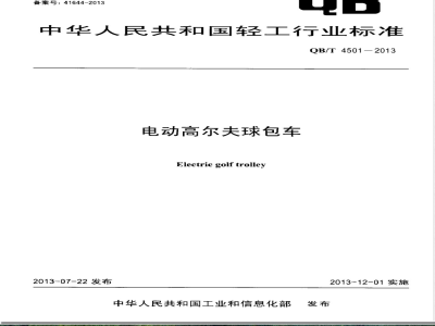 本标准规定了电动高尔夫球包车的术语和定义、产品分类与命名、技术要求、试验方法、检验规则、标志、包装、运输和贮存等。