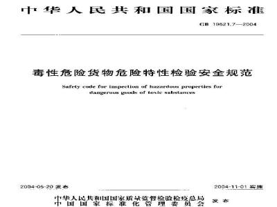 毒性危险货物危险特性检验安全规范Safety code for inspectiun of hazarduus properties furdangeruus Houkds of loxic:subsiantes2004-05-20发布