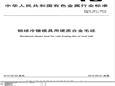 本标准代替YS/T241-1994《钢球冷镦模具用硬质合金毛坏》,本标准与YS/T241-1994相比主要变化如下: