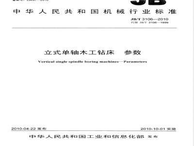 本标准代替JB/T3106一1999《立式单轴木工钻床参数》。本标准与JB/T31061999相比,只按有关规定进行了编辑性修改,技术内容未改变。本标准的附录A是资料性附录。