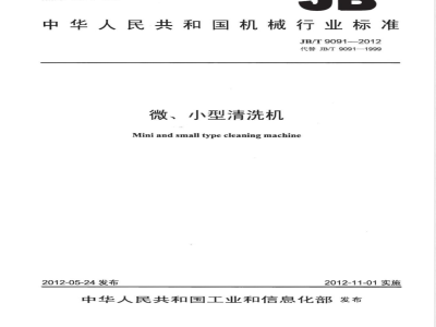 本标准按照GB/T1.1-—2009给出的规则起草。本标准代替JB/T90911999《微、小型清洗机》,与JB/T9091—1999相比主要技术变化如下:参数范围由3.6MPa~150MPa修改为3MPa~40MPa(见第1章,1999年版第1章):将温度指标修改为温升不超过40℃,最高温度不超过80℃[见4.3.1e),1999年版4.5f)];增加4.5启动性能(见4.5);