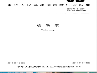 本标准按照GB/T1.1一—2009给出的规则起草。本标准代替JB/T7743—1995《旋涡泵》,与JB/T7743—1995相比主要技术变化如下:增加了前言部分;