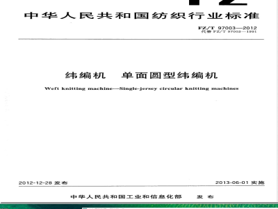 英文名称:Weft knitting machine—Single-jersey circular knitting machines