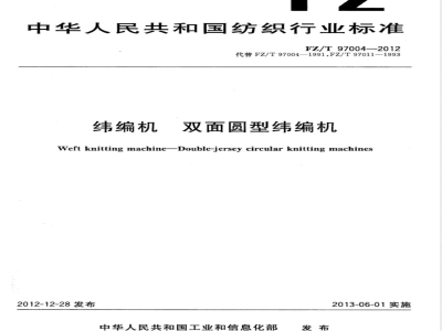 本标准代替FZ/T97004—1991《纬编机 双面圆型纬编机(棉毛机)》、FZ/T97011—1993《纬编机双面圆型纬编机(罗纹机)》。