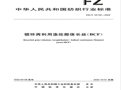 循环再利用涤纶膨体长丝(BCF)FZ/T54132—2022