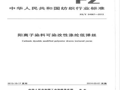 阳离子染料可染改性涤纶低弹丝FZ/T54067-2013