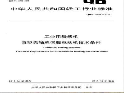 本标准按照GB/T1.1一2009给出的规则起草。本标准由中国轻工业联合会提出。本标准由全国缝制机械标准化技术委员会(SAC/TC152)归口。QB/T4804-2015
