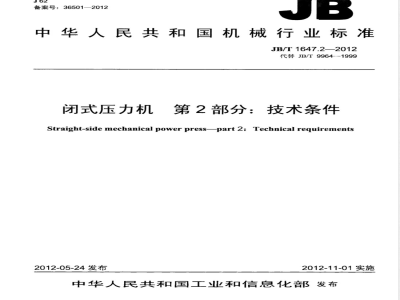 JB/T1647《闭式压力机》分为两个部分:第1部分:参数;