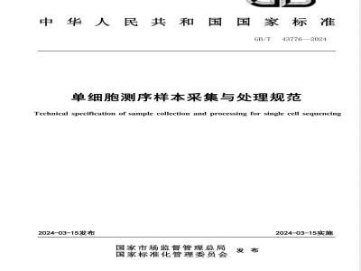 单细胞测序样本采集与处理规范本文件规定了单细胞测序样本采集与处理的基本要求及质量验证。GB/T43776—2024