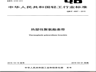 本标准规定了热塑性聚氨酯表带的术语和定义、要求、试验方法、检验规则及标志、包装、运输、贮存。