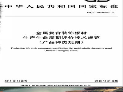 英文名称:Production life cycle assessment specification for metal-plastic decorative panel(Product category rules)