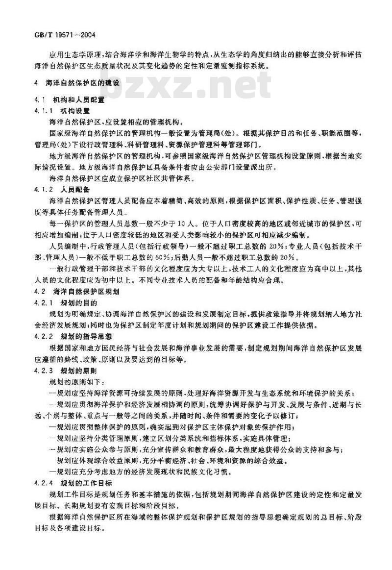 海洋自然保护区,应设觉相应的管理机构。国家级海洋自然保护这的管理机树一股设量为管理属(处)。根据其保护自的和任务,职能范围等,管理局(处)下设行政管理科、科研管理科、资源保护管理科等管理部门。地方级海洋自然保护区的管理机构,可参照国家级海洋自然保护区管理机构设置原则,根据当地实际情况设置。地方级海洋自然保护区具备条件者应由公安部门设置派出所。海洋良然保护区应成立保护区社区共管体系。4.1.2人质配备