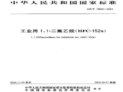 工业用 1,1-二氟乙烷(HFC-152a).1-Difluorocthanc for iudustrial usc(HFC-152a)2004-11-23 发布
