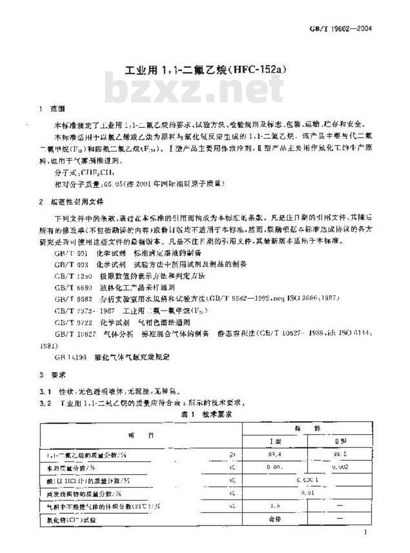 工业用1,1-二氟乙烷(HFC-152a)GB/T19602—2004