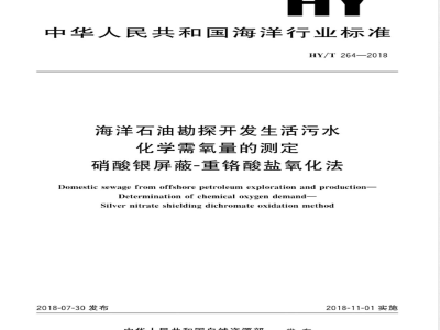 Domestic sewage from offshore petroleum exploration and production-Determination of chemical oxygen demand-Silvernitrateshieldingdichromateoxidationmethod2018-07-30发布