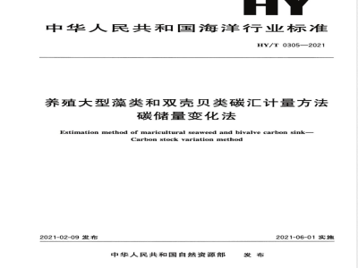 中文名称:养殖大型藻类和双壳贝类碳汇计量方法 碳储量变化法