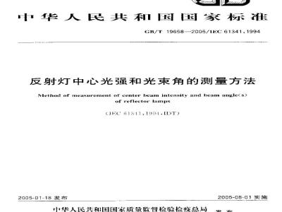 GB/T19658-—2005/1EC61341:1994反射灯中心光强和光束角的测方法求标准规定了反射灯的中心光强和相应光束角的定义和测举方法。本标准适用于普通照明用白炽灯、呕鸽划以及气体效电灯类等反射灯,不用于特殊用途的灯,测如投光划。