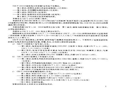 GB/T20000是标准化工作导则.指南和编万规删系判国家标推之一:下而列出了这些国家标证的计结构及其对应的国导标准、导删、查弟,以及将代苦的国家标准a)GB/T1<标准化T作宁,分为:-一第1部分:杯准的结构和编写现则(TSO)/IEC7则第3部分,代警GR/T1.1的3、GH/1,2—19961左布!