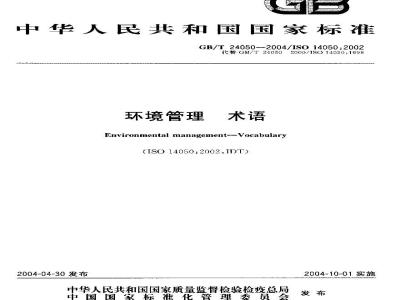 GB/24050--2004/IS014050.2002本标准包含与环境管理有关的、在已发和的G13/T24000一IS0140G0系列标准中所使用的基本概念的定义。