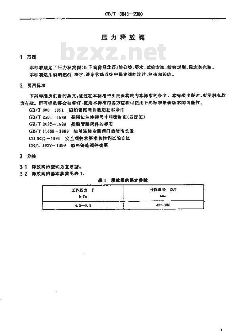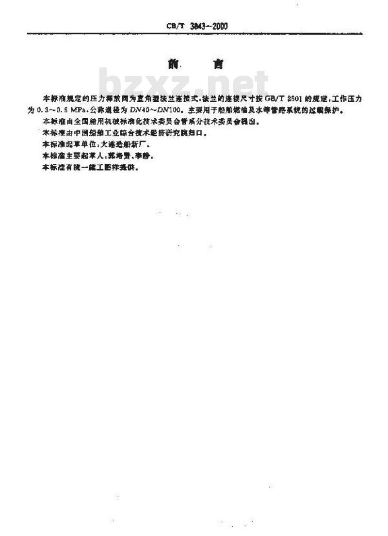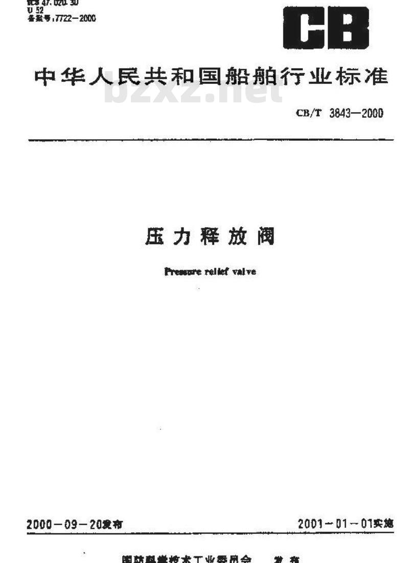 CB 3843-2000 压力释放阀 CB3843-2000 标准下载解压密码:www.bzxz.net