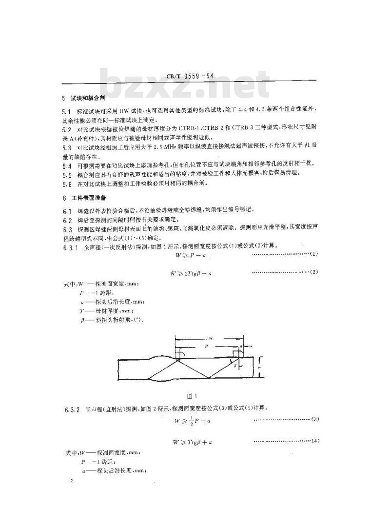 6.3.2:卡程(直射法)探测,如图2所示,探测而宽度按公式(3)或公式(4)计算。w&ip+a下载标准就来标准下载网