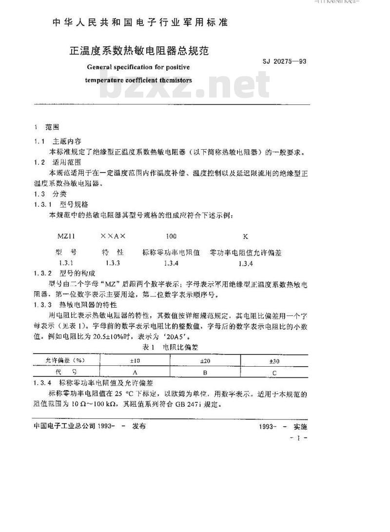 SJ 20275-1993 正温度系数热敏电阻器总规范 SJ20275-1993 标准下载解压密码:www.bzxz.net