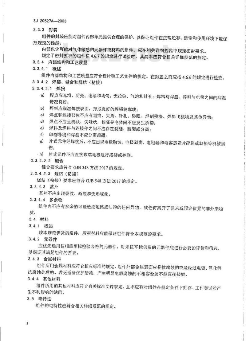 内部包含可能对气体敏感的元器件或材料的组件,应在相关详细规范中规定密封要求。规定了密封要求的组件按4.6.7的规定进行试验时,其漏率应符合相关详细规范的规定。3.3.4内部结构和工艺质量