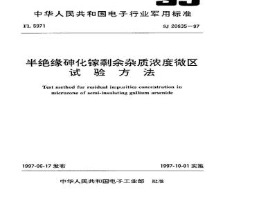 SJ 20635-1997 半绝缘砷化镓剩余杂质浓度微区试验方法 SJ20635-1997 标准下载解压密码:www.bzxz.net