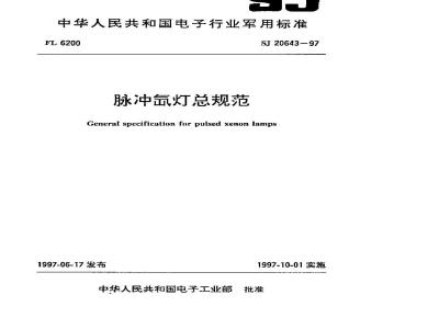 本规范规定了脉冲氙灯的一般要求、质量保证规定、交货准备等本规范适用于各种肪冲氙灯(以下简称氙灯)。 SJ 20643-1997 脉冲氙灯总规范 SJ20643-1997 标准下载解压密码:www.bzxz.net
