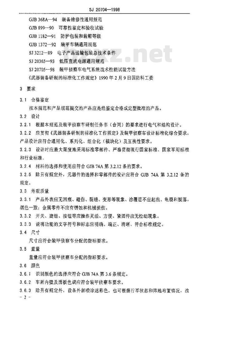 SJ 20704-1998 装甲侦察车电气系统通用规范 SJ20704-1998 标准下载解压密码:www.bzxz.net