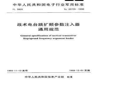 中华人民共和国电子行业军用标准战术电台跳扩频参数注入器通用规范General specification of tactical transceiverhop/spread frequency argument loader1范围