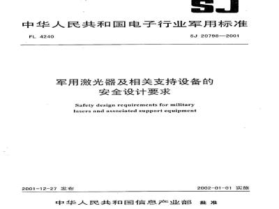 Safety design requirements formilitarylasers and associated support eguipment2001-12-27发布