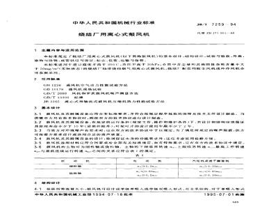 本标准规定了烧结厂用离心式鼓风机的基本设计,结构设计,试验与验收,外观,涂饰与防锈,成套供应与保证,标志、包装、运输与保管。 本标准适用于进口温度不高于250℃,升压不高于20kPa,介质中含尘量和其他固体杂质含量不大于50mg/m3(实际状态)的烧结厂抽排挠结烟气用离心式鼓风机,烧结厂配套除尘风机或环冷风机亦可参照采用。 JB/T 7259-1994 烧结厂用离心式鼓风机 JB/T7259-1994 标准下载解压密码:www.bzxz.net