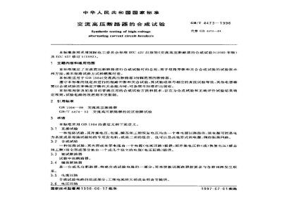 本标准规定了交流高压断路器进行合成试验时的总则、用于短路开断和关合合成试验的试验技术和方法、基本短路试验方式和燃弧时差。本标准适用于GB 1984《交流高压断路器》所辖范围的断路器。遵守本标准的规定所进行的短路开断和关合试验,其试验结果与相应的直接试验等效,其他电器需要以合成试验法来确定开断和关合能力时,可参照本标准作出规定。本标准所涉及的是目前普遍应用的合成试验方法和技术,旨在为合成试验和正确评价试验结果确定准则,试验电路的改进则不受限制。 GB/T 4473-1996 交流高压断路器的合成试验 GB/T4473-1996 标准下载解压密码:www.bzxz.net